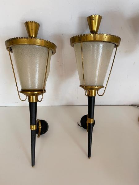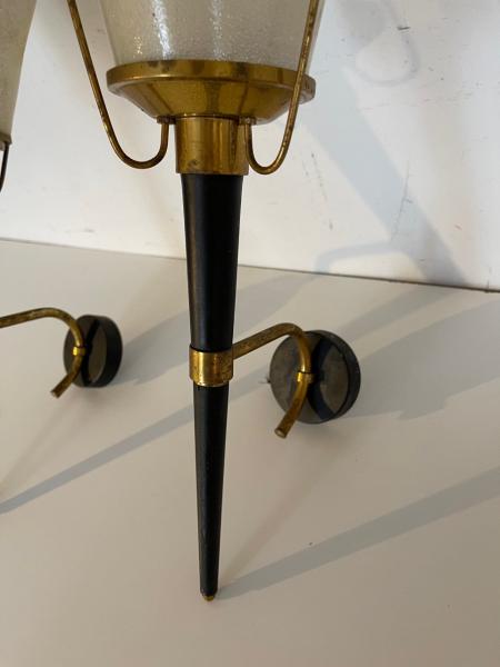 PAIR OF SCONCES. 50´S. FRANCE. IRON AND METHACRYLATE. 17X13X47 CMS