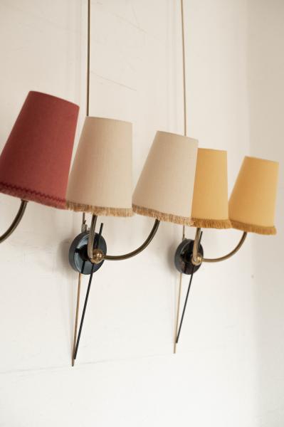 TWO PAIRS OF SCONCES. 60´S. FRANCE. BRASS. 37X20X60 CMS (AVAILABLE PAIRS WITH YELLOW AND BEIGE SCONES)